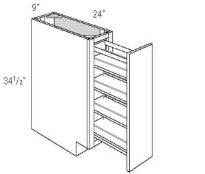Single Door Full-Height Base Cabinet w/ Pullout 9″ Wide